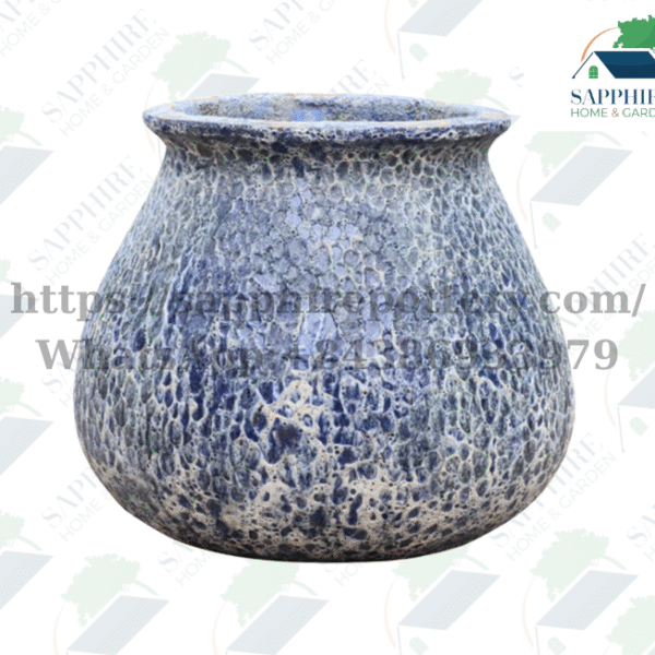 SAP2811257 Blue Atlantis Textured Ceramic Planter Pot – Ocean-Inspired Glaze for Indoor & Outdoor Decor